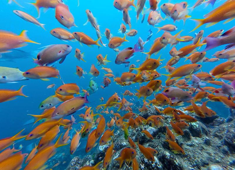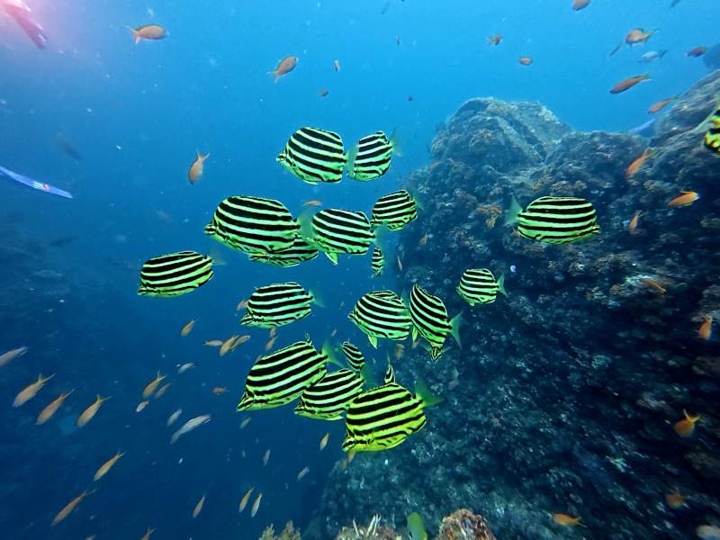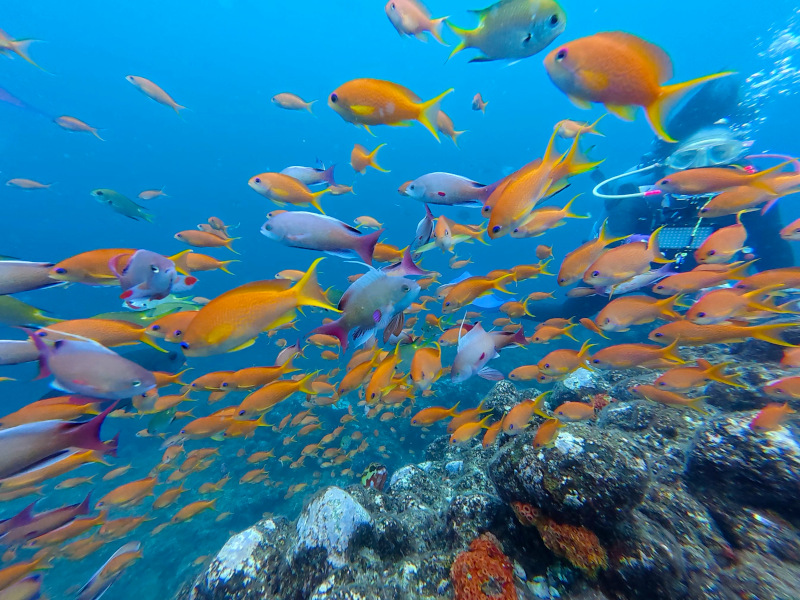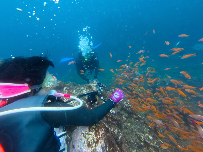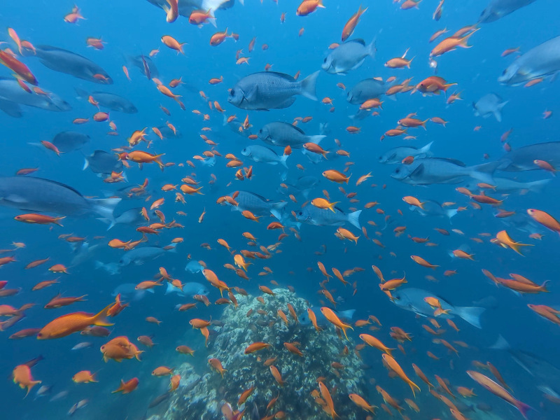それでも安定のキンギョハナダイはあいかわらず見事に群れ、メジナやオジサンもいっぱい。