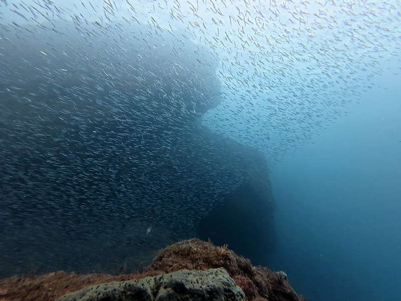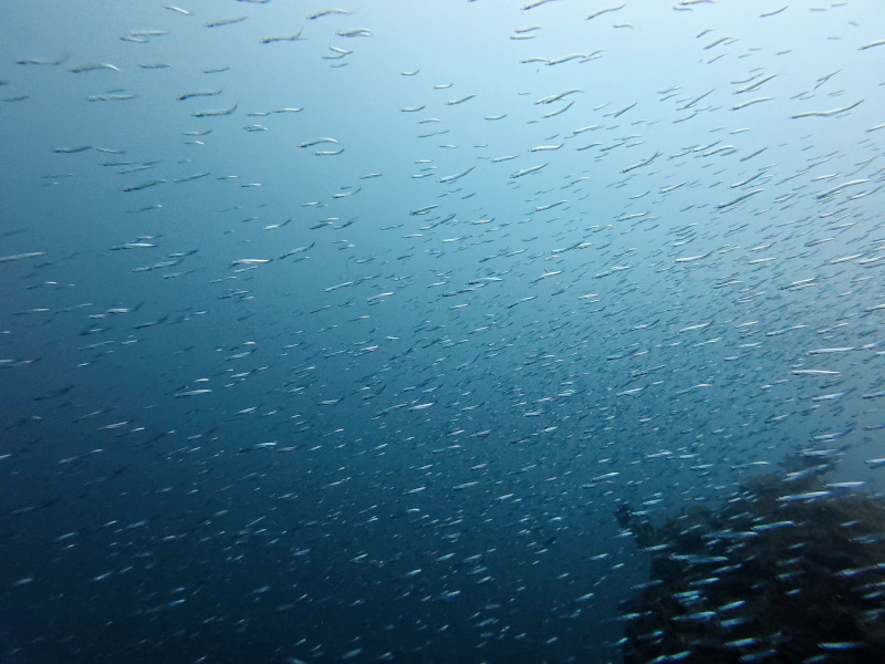 あいかわらずキビナゴの子からシラスサイズの群れが多い。