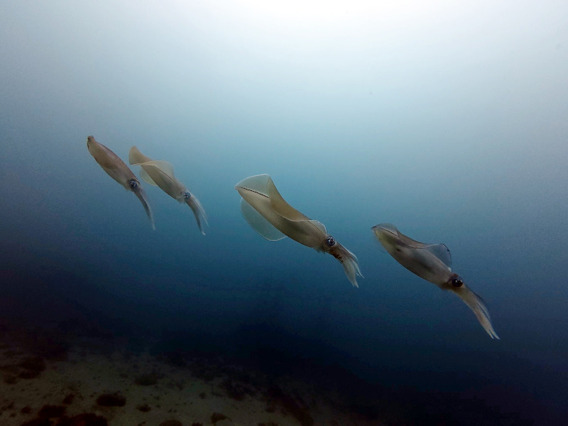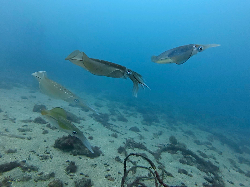 尊之島ではアオリイカの卵があるなぁと思っていたら、10杯くらい、産卵行動中のアオリイカに会うことができました。