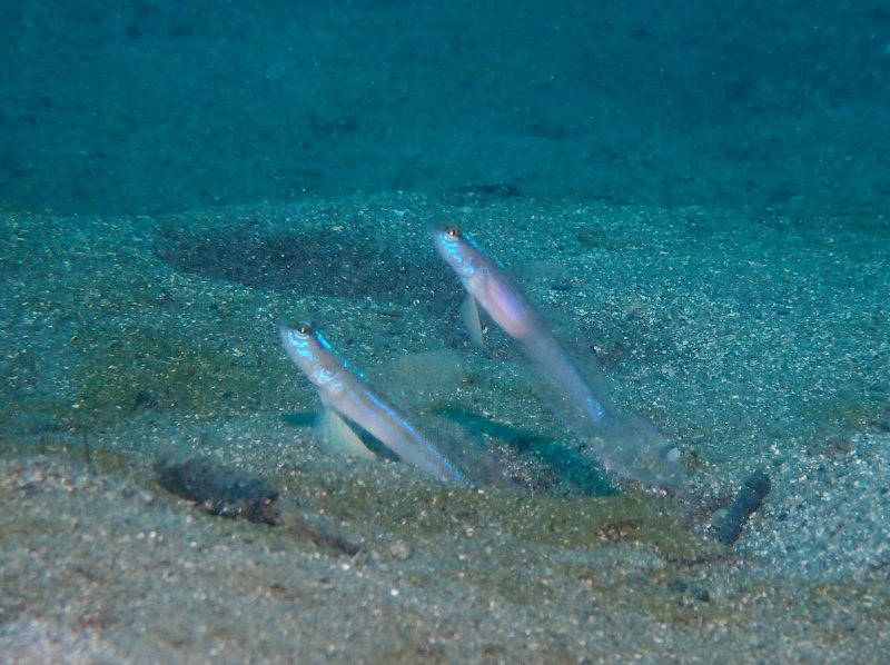 そこに棲むハゼ類を見たいとのこと。土肥の通り崎ビーチには砂地から泥っぽい底質もあります。