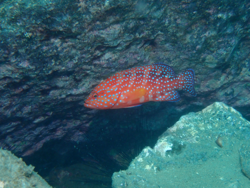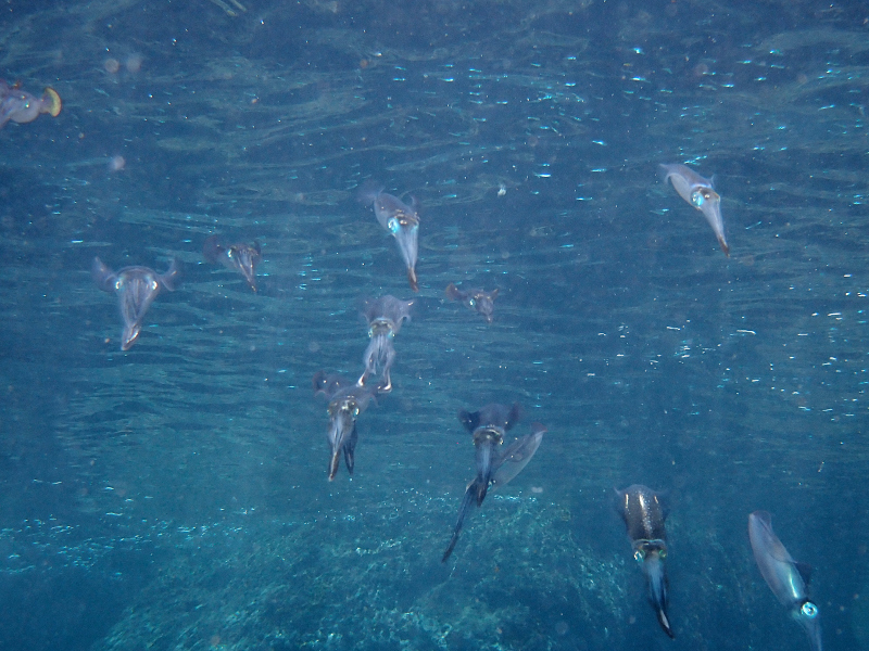 ちなみに水深30mで水温は18℃、水深10m以浅で26℃ 浅場は青くてクリア!