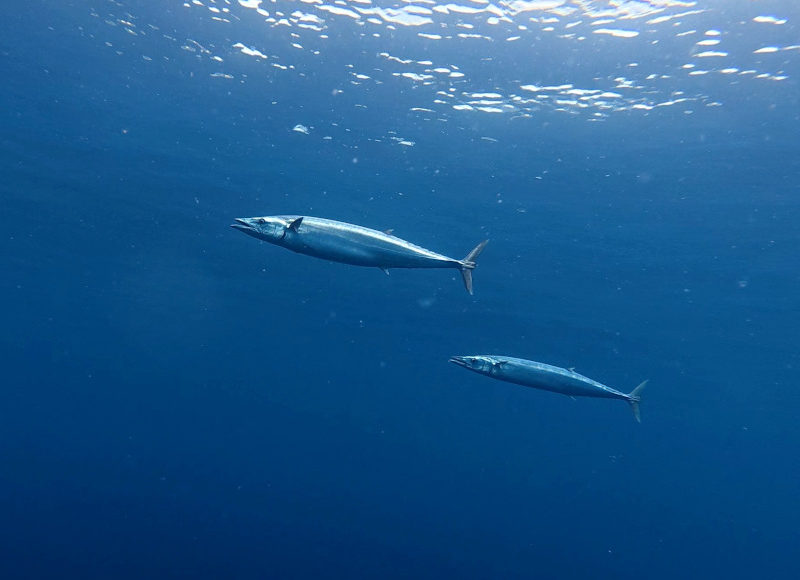 なんて思っていた後半、カマスサワラが2匹ずーーっと周りを泳いでいます。