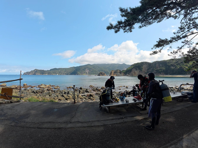 最近の傾向であたたかいのは浅場のみってこともあり(2ダイブ目は砂地の水深12mでも冷たくなかったけど)黄金崎を選択した次第です。