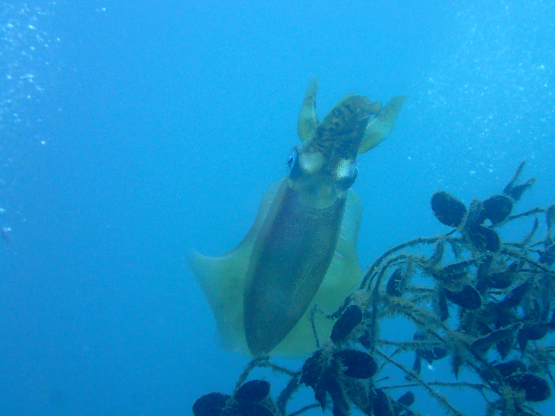 不調の今シーズンのアオリイカ産卵は今日は1ペアの産卵行動が見られました。