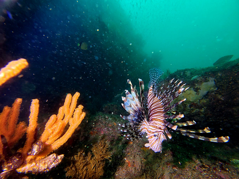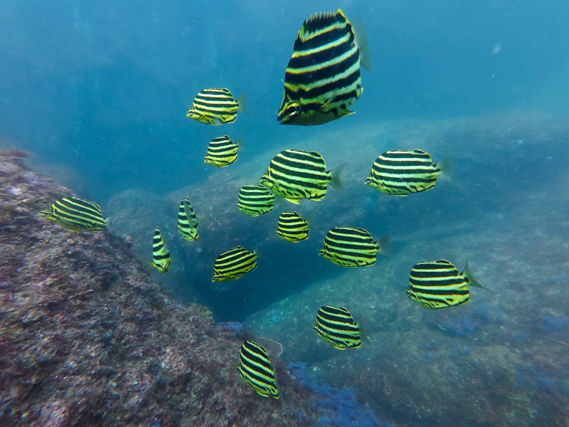 最近良く見るのはカゴカキダイのちょっとした群れやテングダイも。黄色い魚たちは目立ちますね。