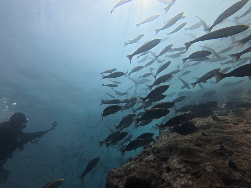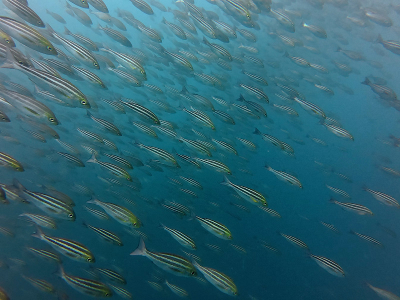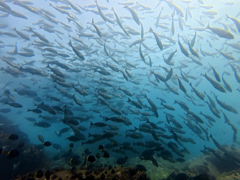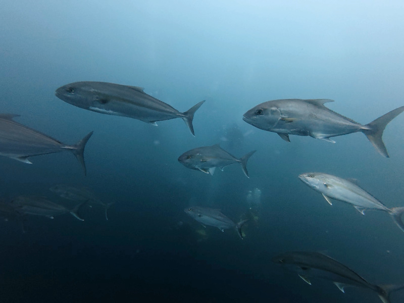 透明度がよろしくないのはありますが、イサキ、タカサゴ、ムロアジ、メジナなどは素晴らしい大群