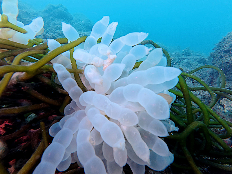 落ちたロープなどに産み付けられていたアオリイカの卵