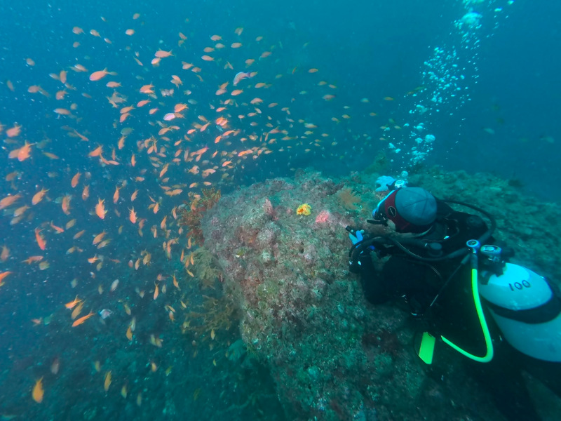 水面のブイを見る限りは流れは大丈夫と思ったのですが潜ってみると潮の流れはおさまっちゃったかな??