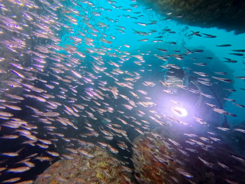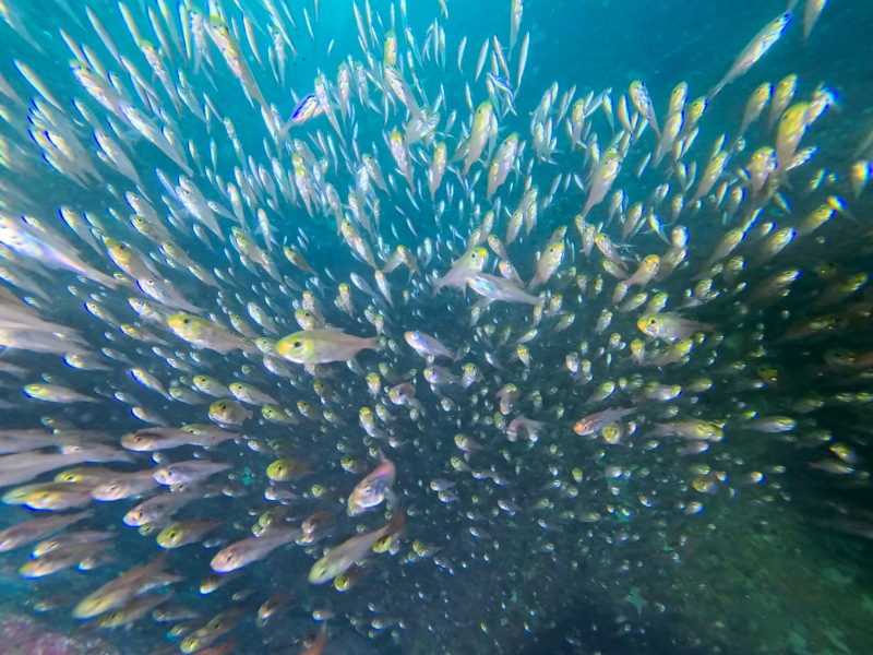 浅場のキビナゴは減ってるかな? それとも透明度の問題で見えにくいのかな。あまりお目にかかれませんでした。