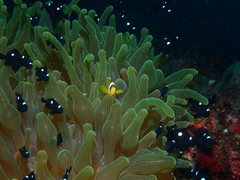 黒潮が来なくてもミツボシクロスズメダイのちびっこたくさんになってきました