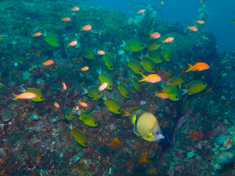 アカオビハナダイも相変わらずいっぱい、ケラマハナダイ、サクラダイも混じります。