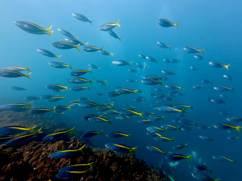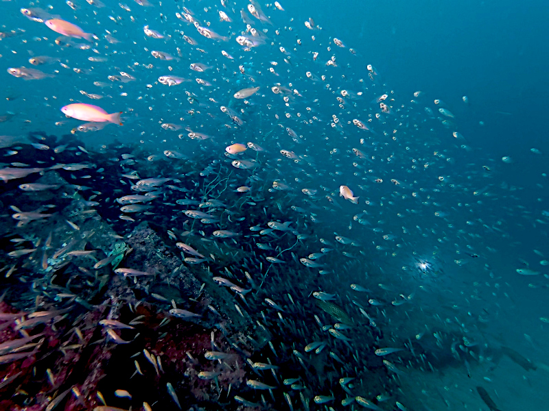 沈船付近でいないなと思ったキビナゴたちは浅場で群れていました。