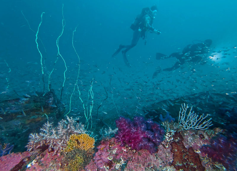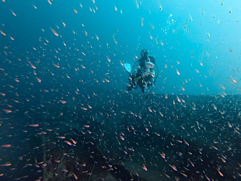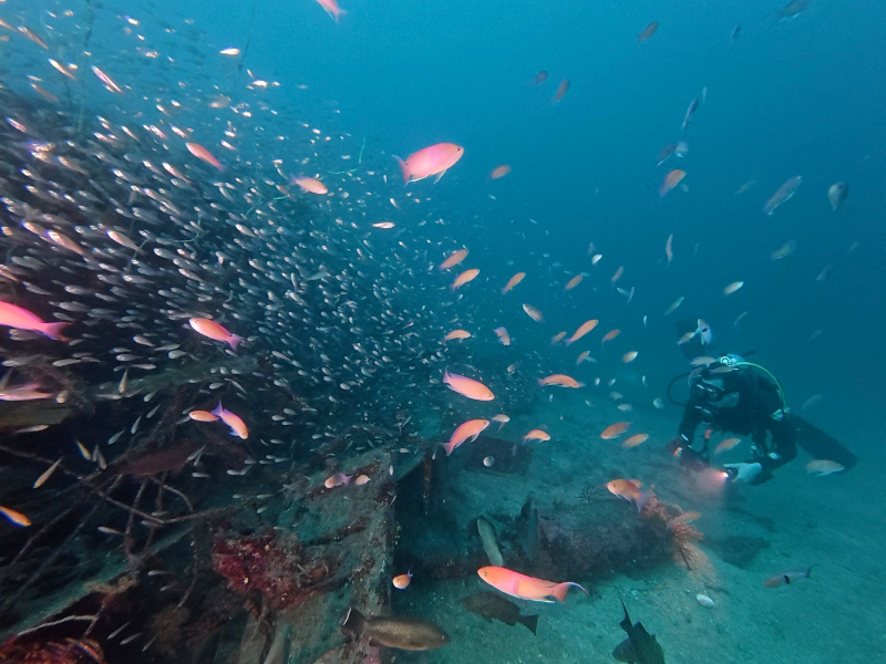 沈船には相変わらずクロホシイシモチの子やキンメモドキの子が群れ群れ