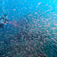 でも久〜しぶりの湾内、水面近くにはキビナゴやトウゴロウイワシがいっぱい。