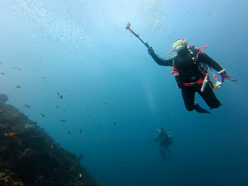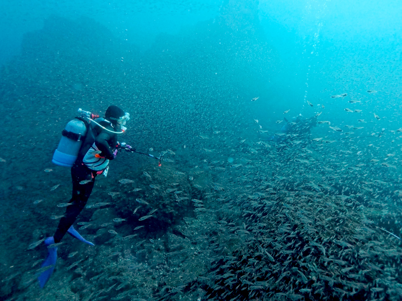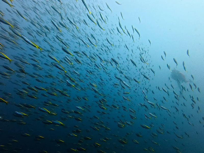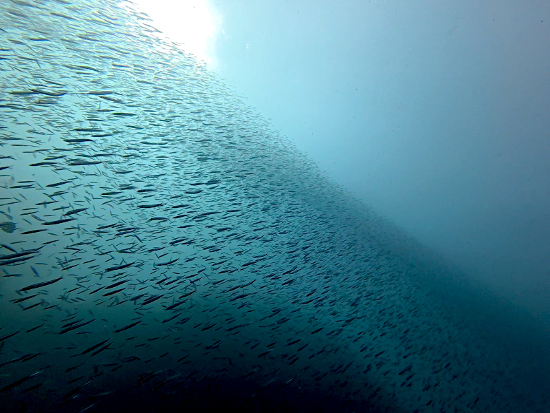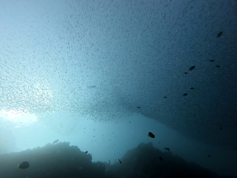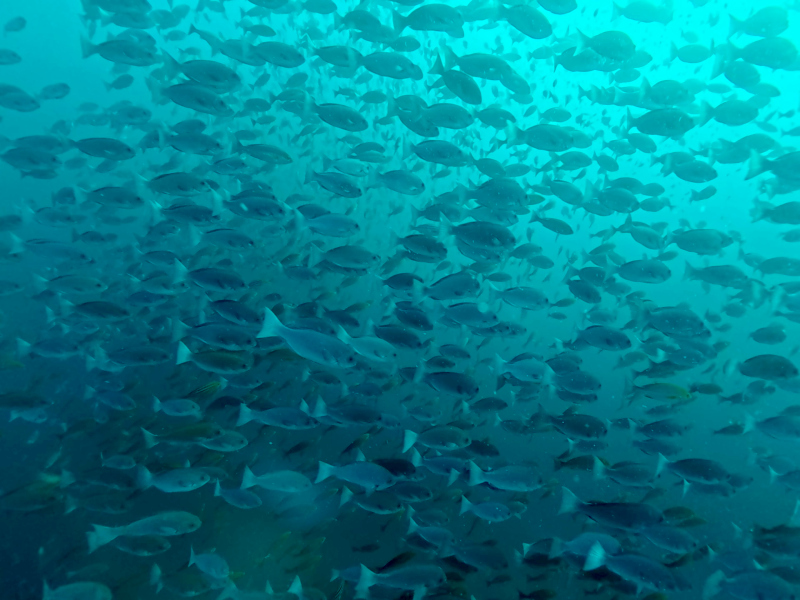 ちょい深くいけばいろいろいそうですが中層が賑やかすぎて2ダイブとも魚群遊びとなりました。