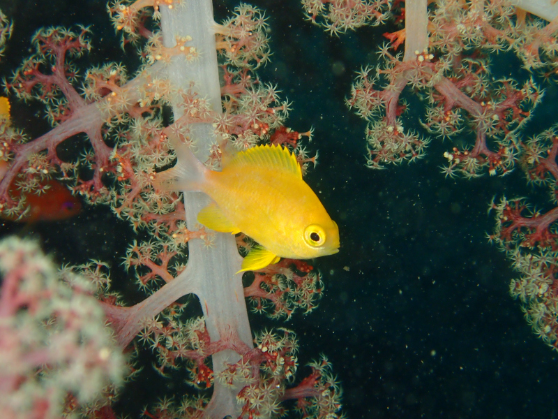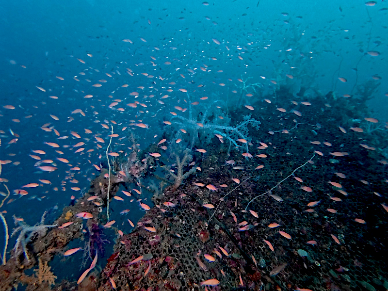 赤っぽく見える魚達はアカオビハナダイのメス達