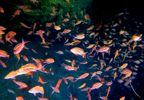 シニアな目の私達、小さい生物は探しませんでしたが中層のカマスやイワシの群れ。