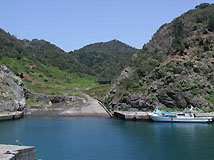 よさそうなところへと車を走らせて、とある小さな小さな漁村に来た。ここは小さな船外機付きのボートで細々とダイバーを潜らせているようだ。陸上景観は山が迫り、海岸は入り組んでいる。とりあえず今日はここで潜ってみよう。