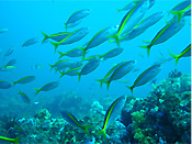 ・ 今日も暑い!フトッチョには辛すぎる。海にでも入らなければやっていられない。さて、海は遠い台風のうねりがありそうなので地形ポイントではなく田子にやってきた。つい5日ほど前来たときは良好な透明度と魚影を堪能した。しかし、今日はエントリーすると??。ずいぶんと濁っちゃっている。やはりうねりの影響があるのだろうか。潮流も速めでせっかくの魚影が散り気味である。ネンブツダイ、キンギョハナダイ、サクラダイの群れは相変わらずなのだが、この季節のお楽しみの走る連中は根から離れていて(透明度の関係で見えないというのもあるが)あまり間近で味わえなかった。トビエイが通ったり、何故かゴマテングハギモドキの若いのの群れがいたりしたが前回の印象があったのでちょっと残念。自然はいつも同じじゃないから仕方ない。また、すぐに良くなるんだろう。