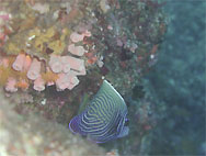 昼頃に秋目に到着しさっそく鷹島に走ることに。南西からのうねりが多少あり鷹島に向かう往路はすこし船がたたいたがスピードは落ちない程度。50分で到着、やっぱりしおり丸は早い!とりあえずよく潜る沈み瀬にアンカーを打つが大潮であるせいか潮流が速い。水面も潮波というか潮うねりがある。水中はあいかわらず元気なハード&ソフトコーラルがカラフル。タカサゴは夏ほどの群れはつくっていないのが残念。ムロアジもちょっと離れ気味に中層を泳いでいる。透明度は15m前後といったところか。エキジットすると近くでバショウカジキがはねてたよと言われしばらく見ていたがそうは簡単にゆかない。