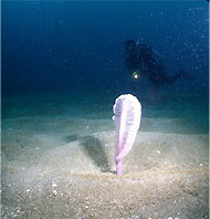 連休もここへきて天気がはっきりしなくなってきました。西伊豆の山には低い雲がたれこめ時折小雨が降ったりしていました。黄金崎公園ビーチはまずまずのダイバーの数。といっても団体さん(20人とか30人とかの。ス、スゴイ!)が数組いたのが大きいかな。 海はまたちょっときれいになったような。浮遊物と白濁は多少ありましたが水深12mからでも水面ははっきり見えていました。さらに水温も急上昇して19℃前後。この数日に比べればラクチンです。今日は子アジがたくさんいました。あちこちに群れています。その他遠くにボラクーダの大群、クロホシイシモチの群れ、スズメダイ、メジナも群れ、キビナゴも群れです。かなり賑やかになってきました。たくさんいるタツノイトコ、ネジリンボウ数個体、コガネマツカサウミウシ、アオウミウシ、ホタテウミヘビ、ホウボウ、ビシャモンエビ、季節を感じさせるアメフラシ、ワレカラも目に付きました。 天気はどうやら下り坂ですが海が良くなってきたのはよかったですね。