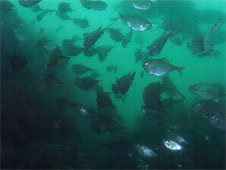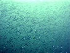 すっきりしない空模様だけどうねりもかなりとれて海はほとんど凪の状態でした。 そして今週からオープンした田子の「沖ノ島」に行ってきました。ここは田子島の南1キロにある隠れ根(といってもかなり広いらしい、それから島とありますが水面には顔を出していません)です。下は水深40m、浅いところは5m前後。田子の看板ポイントのフト根(沖根)をはるかにしのぐ実力とのふれこみでした。そう言われちゃぁ行くしかない!?ちょうどそんなのが好きそうなメンバーもいたのでさっそく行って来ました。 目印?のブイはまだ急ごしらえでしっかり設置してあるわけではないのでつかまったり引っ張ったりすることはできませんでした。透明度がわるく潮流が速い(外海だからそんなときも)時にはけっこうアブナイかな。でもすぐにちゃんとしたブイが設置されるでしょう。 水中は残念ながら台風通過後の透明度の悪さはまだ回復していません。それでも...すばらしい魚影でした!ドロリと濁っていて地形を見渡すのは困難でしたがあちこちで魚群が走っているのが見えました。今回はマアジやタカベ、イサキなどの群れの常連はほぼいなかったのに十分な濃さでした。 キビナゴ大群、スズメダイ大群、メジナ大群、ニザダイ群れ、大きなマダイ編隊、トビエイ×2、なんとイシダイ(ほとんどクチグロ)数十匹の大群まで登場。ハタンポ群れ、コケギンポ、岩肌にはソフトコーラルやキサンゴ、イボヤギがびっしりです。今回はさがしませんでしたが壁にくっついていたりじっとしている生物もきっとおもしろそうです。 潮流が止まった2本目は魚影が「??」となってしまって多少さみしい水中となってしまいましたがキビナゴ大群やメジナ大群などはがんばってました。透明度の良いときに潜ってもうすこし活動範囲を広げればいっぱいおもしろい場所がありそうです。このシーズンは沖ノ島を楽しめそうな!