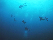 潮流の速さもあって考えたあげくやはりみんなで飛び込んでみることにしました。結果的には潮は多少はゆるみましたしメンバーは思った以上にバリバリさんたちでした。先ほどよりは魚影は減ったかなという感じはありましたが十分な魚影とムレハタタテダイの群れなどを見ることができました。よかった、よかった。