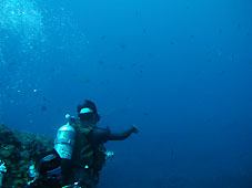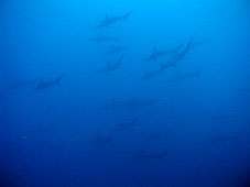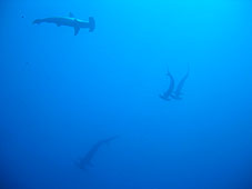 好調の神子元にまた行ってきました。海は台風の影響のうねりがありましたが問題なし。水は少し沖に出ると青く暖かい潮です。潮流は午前の部はちょうどよいくらい。昼からはずいぶんとゆるくなっていました。お目当てのハンマーはというと1本目はバッチリでした。はじめにハンマーとメジロザメ、そのあとはまわりじゅうハンマーがいるみたいな状態でした。その後もますますいい群れが登場しましたがお時間(エアーも)がきて群れを横目に浮上でした。2本目は残念ながら… でもこの夏はたいしたことになっていますね!