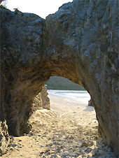 ビーチに沿って岩をくぐると展望台まではもうすぐです。