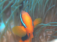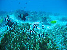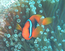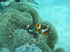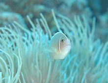 白い砂浜を泳いでいるとカメがこちらを見ている。もう一匹のカメは自分より大きいようなコバンザメをお腹に付けて泳いでいった。トウアカクマノミは大きな個体がいなくなったそうで、体色が薄い若い個体ばかりでした。