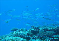 少し流れがかかって来たところだったので、サンゴの間のさかな達も元気に餌を食べているようです。キビナゴ?の群れが形を変えながら逃げ回っていました。