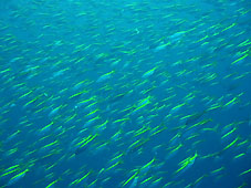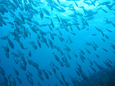 ・ちょっと久しぶりになってしまった神子元に行ってきました。天気予報は雨の確率が高くて雨具の用意をしながらの出発でした。(でもダイビング中はなんとか降られずに済みました) 海はたいした波も無く気温も高めで船の上も快適でした。そして飛び込んだカメ根。透明度も良好で十分に青い水です。朝一の他船ではハンマー目撃との情報がありましたがなるべく気にせず南へゆっくり向かいます。結果から言うと今日はハンマーに会うことはできませんでした。しかし神子元ならではの広い海中とタカベやイサキの群れ群れはやはり見ごたえ十分です。2ダイブ目の時にはさらにパワーアップしてどちらを見てもタカベの黄色だらけになったりイサキの大群が降ったり。メジナの群れやテングダイ、カンパチ編隊、ヒラマサなどを見ることができました。とにかくここの海は群れとなるとものすごい数です。浮上の際の安全停止時には青い水の中でみんなで浮いていると伊豆とは思えなくなります。 やはり水がきれいってうれしいですね!
