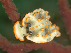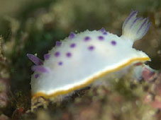 いまさらですが白崎ってウミウシの類が多いんですねぇ。いつも言うのですがウチはウミウシマニアというか得意にしているわけではないのですが嫌でも(嫌なわけではありませんが)目に入ってきます。それぞれに個性があってそれはそれで(いや、もちろん)楽しいです。アオやシロなんて2キック?するごとに見かけます。今日はなぜかシロハナガサウミウシがたくさんいました。ワンキックで2匹って感じです。それから大きくて肉眼でも触覚がどれだか容易にわかるくらいのヒロウミウシや、田子で見るのにアラリウミウシ、大きくて見やすかったハナオトメウミウシ、最初はシロウミウシかと思ったクリヤイロウミウシなどでした。この時期の白崎といえばトビエイなのですが下ばかり見ていてたまにしかチェックしなかったので会えませんでした。。他にはメバルの子の群れやイセエビの子らしいのを飲み込みきれずゲコゲコしているカサゴなど。