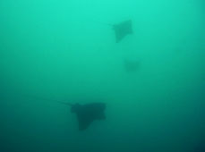 ・ 本日は田子です、1本目のフトネは透明度は良くないものの流れもなくベタ凪、魚影は濃かったです。イサキ、タカベの群れ、サクラダイ、ネンブツダイ、それに突然目の前に現れる巨大マダイが数十匹。あまりの大きさに何回もギョッとさせられました。2本目はエントリしたところに特大イセエビが、その直後にトビエイが1匹現れみんなで目を凝らして見送っているとその横から10数匹の編隊が現れ、また別隊が現れるでトビエイ満喫day、エキジット直前の枝サンゴ群あたりでもシッポのない大きなトビエイがのんびり通りすぎて行きました。 イタミ