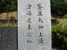 秋目って定期バスも来ない田舎(ゴメンナサイ)なんですが、実はあの有名な鑑真和上が幾度もの渡航失敗の末に上陸できた土地なんです。知ってました?