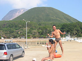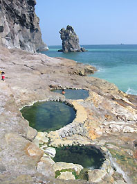 でもホントにワイルドです。火山丸出しの後ろの景色と前はすぐ海です。お湯は緑がかっているけど透明できれいです。なめてみると酸っぱいというのか独特の味です。