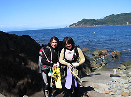 今回の初心者講習は最終日。昨日の海とはまた違う環境を経験していただきます。それからファンダイブの方も別チームでエントリーします。水は青くて明るくてきれいです。ゴロタと砂地の境あたりは本当に魚が多くて感動しちゃいます。イサキの子の大群、マアジの群れ、スズメダイ、クロホシイシモチらの群れなどどこをみても魚でいっぱいです。砂地ではハナハゼの青がとてもきれいだし、オグロクロユリハゼの青はさらに濃いくて映えます。