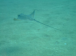 ムレハタタテダイの幼魚はますます増えて100匹以上は群れています。ハダカハオコゼ、イバラダツ、ミジンベニハゼのペアなんかももかわらず姿を見せてくれています。砂地の奥のほうでは小トビエイが次々に飛んで入る姿を見ました。なんででしょうね??他にもカンパチの編隊や大きなマダイの群れ、メジナの群れなども見られました。