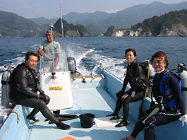 ・風はそこそこ吹いているようですが西伊豆は穏やかです。田子も平日だしのんびりしたものです。台風の影響もほとんどありませんでした。そんなわけで外海2本。フトネは水は白っぽいかな。でもあいかわらずスズメダイ、タカベ、イサキはたくさん群れていてダイバーを囲んでくれたりしています。サクラダイの群れもぐっちゃりです。その中に1匹だけナガハナダイが混じっていて目立っていました。 2本目は沖ノ島。ハマフエフキはやっぱりたくさんいて数えたら40匹以上。でもバラけていたのがちょっと残念。ハタンポの塊、イサキ、タカベなど近づいたり離れたりしていました。そしてなにより1本目のフトネと違った起伏に富んだ地形が好評でした!みなさんあちこちをのぞいて遊んでいました。