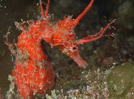 ・ゴールデンウィーク真ん中の今日はあいにくの雨模様です。気温もあまり上がらずに前日に比べかなり寒く感じました。そのせいなのか普段の平日みたいにダイバーも少ない海辺でした。 そんな天気ですが海は静かで透明度もこの時期にしては良好です。砂地あたりでは水の青さが気持ちいいです。その青い水の中キビナゴの大群やキンメモドキの群れなど魚はいっぱいいます。ロープにはタツノイトコがよく目に付きます。ミジンベニハゼのペア、カエルアンコウ(旧名イザ○ウオ)は目立つ場所でがんばっています。ほかにもハナタツ、大きなワニゴチなど飽きない水中でした。
