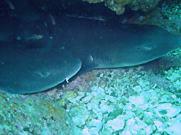 ・とっても久しぶりの東伊豆遠征。素晴らしい沖合いのポイントを持つ伊東です。天気は晴れ、9月も中旬だと言うのに暑いです!海は少〜しうねりはありますが南西の風なのでこっちは静かです。 まずは巨大な沖合いの隠れ根である白根へ。エントリーは南のブイからですが潮流は北から。潮上に向かって進みますが泳ぎにくいほどの潮ではありません。透明度は水深10mくらいまで6mほど。その下は白っぽいけど8mくらい見えてます。水深25mくらいから下はかなりきれいそうでした。そして潮上に近づくとやっぱり魚群ショーが始まります。強烈な濃さのイサキの大群とタカベの大群。そこへワラサ群れやらカンパチ群れ(どちらもいい大きさでした)が突っ込み大騒ぎ! いや〜素晴らしいパワーでした。 そして2本目は「尾根残し」。ここは今日から開放です(毎年9月中旬から開放)。1本目の白根でお腹いっぱいサカナに囲まれたのであとの余韻程度の期待でエントリー。あれ?水深10mくらいから下は水がきれい!20mは見えていたかも。白い砂地と青い水、それだけで気分バッチリです。 でもそこからはまたもや怒涛の魚群祭りでした。雲のように群れるキビナゴがビランビランとひるがえり、イサキはまたもや超大群。ワラサ軍団やイナダの群れも突っ込んでいます。透明度20mの中でイサキは壁になり絨毯になりキビナゴは天井のようになっていました。そんな魚たちにず〜っと囲まれてのダイビングは最高の気分でした。 そうそうそれから久しぶりのドチザメ×3匹やツノダシ、アカヒメジ、イセエビ多数なども見れました。さすが今日から開放って賑やかさでした。 それにしても昨日の田子から今日の伊東までいったい魚を何万匹見たのでしょう… もう皆さん寝ても夢に魚の群れが出てきてしまうのではないでしょうか(笑)