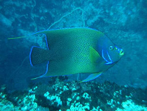 あきらめて畝神に飛び込みます。高すぎる水温のためか魚は湧いてきませんでしたが、そのダイナミックな水中景観はさすがです。(魚は少なくともロウニンアジくらいならお安い御用。) この日3ダイブ目は皆さん疲れも見えたので、穏やかなポイントへ。 ここがなんともサンゴが生き生きしていました。こんな水底はずっと以前の沖縄のよう。どこまでも見えそうな青い水の中ウメイロモドキやハナゴイが乱舞していてすっかり癒されてしまいました。 こんな場所もトカラのひそかな見所かも。 翌日の朝、ハヨームネに行くと果たして潮流はおあつらえ向き。もちろん飛び込みました。ダイナミックな地形とロウニンアジ、イソマグロ、テングハギモドキの群れなどが現れてくれました。 |