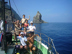 今年のトカラクルーズも無事に終わりました。 素晴らしい海況に恵まれた5日間でした。 船の舳先(ヘサキ)でお話できちゃうくらいでした。(もっともずっといたら日焼けでエライことに) このツアーでは久しぶりに悪石島まで行くことも出来ました。悪石島、初めての方も多かったですね。 天候や海況によっては変更も当然ありえるツアーですが、完全な外洋にいることを忘れてしまいまいそうな滑らかな海でした。 真っ青な海と堂々として泳ぎ回る魚たち。 今年も最高の自然とトカラブルーを堪能できました!! 黒潮渡る海に浮かぶトカラ列島の島々。今ではこの海域にダイビングで訪れる人は年間数組あるかどうかでしょう。 そんな海で縦横に船でめぐり、凄そうだったり楽しそだったりする場所に飛び込むことが出来るなんてダイバー冥利に尽きると言うものです。 潜る場所も見る魚や光景も雑誌や流行に左右されがちな昨今のダイビングシーンですが、こんなスタイルのダイビングも続けて行きたいと願っています。 次の場所まで船で数時間、泊まる場所は街も飲み屋も無く、島には整備されたきれいなビーチもありません。 そんなツアーですが本当に楽しそうに過ごしているメンバーの方たちを見ていると人に恵まれた感謝と幸せを感じます。