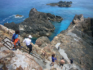 久しぶりの悪関島です。 ほとんどの参加メンバーの方も初めてです。 悪石島は海では北の立神(ハヨームネ)、東の立神(畝神)とトカラでも指折りのダイナミックポイントがあり、島も不思議なボゼが出現する盆踊りなど特異な文化でも知られています。 温泉も豊富で海岸の温泉から露天風呂(今回はお湯が入っていませんでしたが)砂蒸し風呂まである島です。 その不思議な名前とともに最もトカラらしい島であるかもしれません。 |