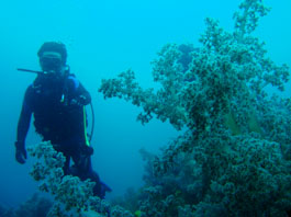 ゆっくり休憩して2本目は雨もあがって明るくなった中、「田子島裏」に行ってきました。5月から開放されたこの場所も潜れるのもあと少し(9月19日まで)。ここはなんと言っても見事なソフトコーラル群生が素晴らしいです。いまやめったに見ることが出来ないくらいの大きなトサカ類がビッシリ岩を覆っています。そしてここへ来てスズメダイがやたら集結しています。今日もダイビング中ずっとスズメダイの大群が降り注いで囲まれていました。贅沢なソフトコーラルのお花畑と魚のシャワー。参加のメンバーの方は「本当に良かった〜!!」。とっても感動していました。