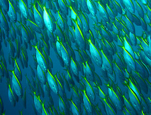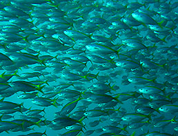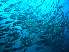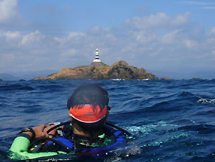 ・今日は天気は良いけど、南西の風が次第に強くなりました。 海は透明度はいくらか白っぽいけど良好で水温も快適でした。ハンマーに関しては3匹を見たグループもあったようですがウチは出会えませんでした。 でも、神子元らしいタカベ、イサキの竜巻のような超大群をたっぷりと堪能することができました。 西伊豆で見る大群は壁って感じなら、神子元で見る大群は竜巻って感じです。どっちも見ごたえありますね。 1本目はカメ根でたっぷり群れを楽しみましたが2本目は南西の風が強くなり波も高くなり比較的静かなブダイ根でまったり潜りました。こちらでもタカベの大群にテングダイ、カンパチ編隊、ツムブリ群れなどがあらわれました。 自然には勝てませんが、そんなときだから潜った場所もなかなか楽しいトコでした。 |