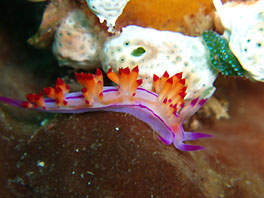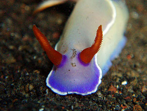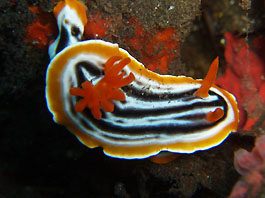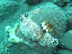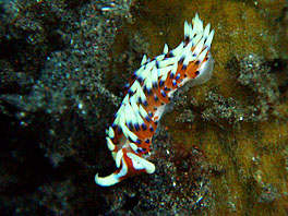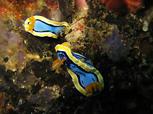 ウミウシ 私たち、とくにウミウシファンと言うわけでもないのですがそれでもたくさん目に入ってきました。 これまた通りすがりでいろんなウミウシに出会いました。 その気で探したらめちゃくちゃいるのでしょうね。 なにしろきれいなのでいっぱいいるウミウシには楽しませてもらえました。 |