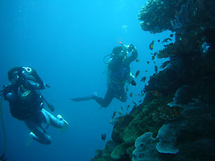 ヌサペニダは日本の夏にあたる頃にはマンボウとの遭遇率が高く多くのダイバーが訪れるとのこと。 ハナからそういう狙いの無い今回は割りとお気楽状態。こちらもサンゴが見事。 ゆるやかな潮流の乗りながらたっぷり潜りました。 |
