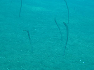 のんびりダイビングではあるのですが生物は実に色々。 小さなピグミーシーホースやハゼなどから巨大バラクーダ、大きなコクハンアラ、さらにはパラオやモルディブにも引けをとらないギンガメアジの渦まで。 なんでもあり状態ですね! |