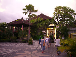 サヌール 今回5泊したうち後ろの2泊はサヌールのTAMUKAMIというホテルに泊まりました。 さっそくサヌールの街を歩いてみました。 ビーチにはおみやげ物やが並んでいます。 1本入った通りにもレストランやおみやげ物やが並びます。 人通りはそれなり、と思ったのですが後に行った西海岸側の人の多さに比べたらサヌールの静かさがよーくわかりました。 しかも、サヌールではあまり日本人もいませんでした。ホテルでもほぼ見ませんでした。 有名なクタビーチなどバリ島のイメージはああいった賑やかさと共ありました。 ちなみにサヌールでも何人かのメンバーの人たちとマッサージに行ってきました。 さすがに街のマッサージ、ビル風の建物で値段は約3,000円。 |
